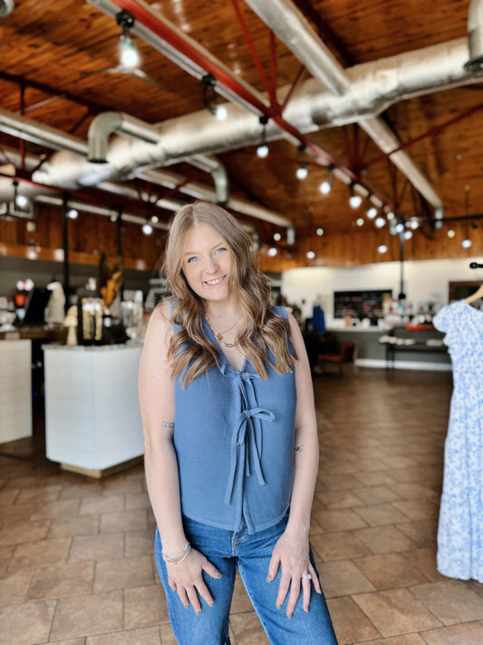 Blue Tie Front Knit Vest