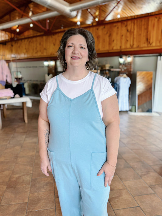 Curvy Mineral Wash Blue Slouchy Jumpsuit