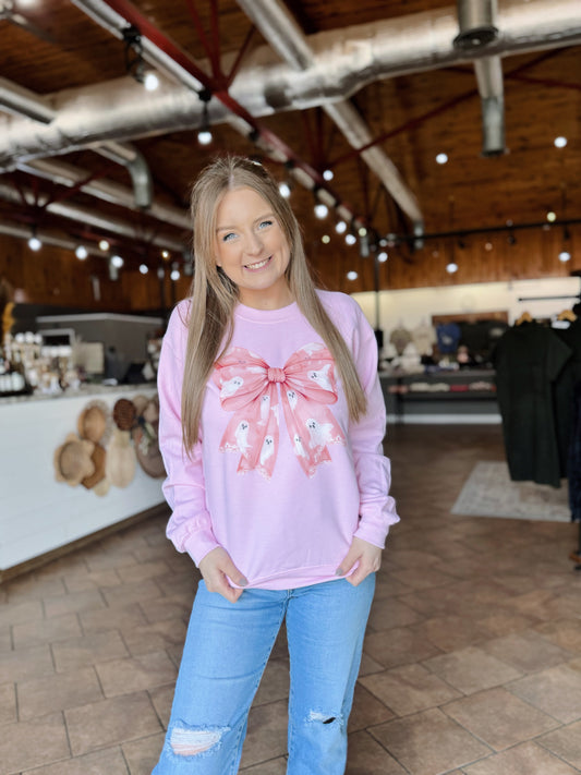 Pink Spooky Bow Crewneck