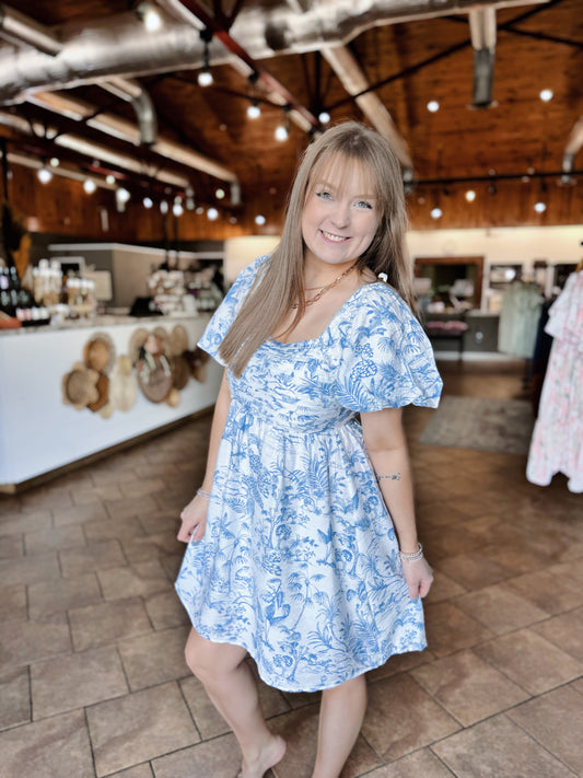 Blue Botanical Print Dress