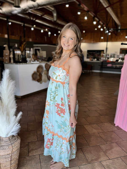Mint Bold Floral Ric Rac Dress