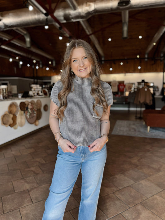 Mocha Acid Wash Cropped Sweater Vest